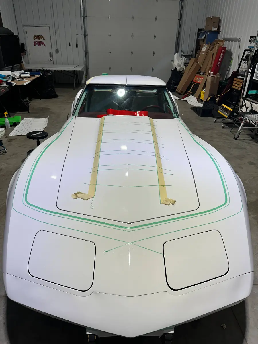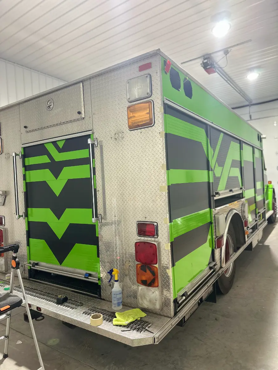 Materials: Avery satin black, Avery gloss green and knifeless tape to to design the lines on the vehicle.